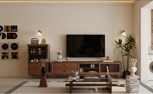 業主是一對年輕夫妻,喜歡有格調且帶些復古的元素,整體采用現代中古風格加一些包豪斯的概念,形成一種獨特而富有魅力的設計風格,在設計整體上注重簡潔有型,不管在硬裝造型上還是家具裝飾上,基本以抽象的幾何體塊和有機曲線結合