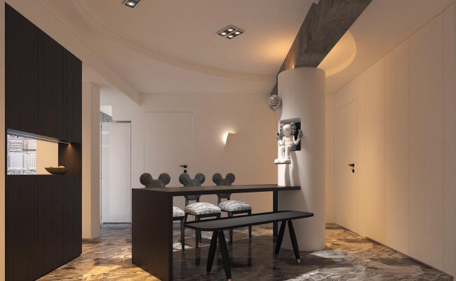 業主是建安集團廣州穗龍公司董事長,這套房主要考慮自住,要求低調內斂的奢華,突出品質感,不浮夸,所以針對業主的年齡階段和審美層次,選擇了新中式作為風格表達