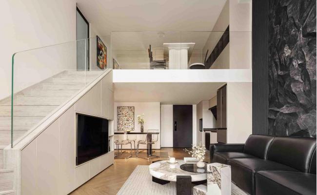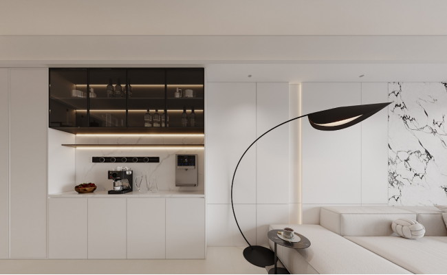 “留白”是書畫創作中常用的一種手法,本案中也運用了以無勝有的留白藝術??炊嗔烁魇礁鳂樱涡紊难b飾藝術,最終我們希望的是回歸內心,大道至簡。在紛亂的生活中,尋到屬于自己內心的一片寧靜,用灰白、米白、大地色等為基礎,搭配本身獨特的肌理變化,在素凈、優雅簡約的效果中回歸內心,寬闊的空間布局,是留給人與自然互動的空間。