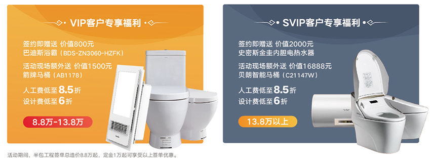 本次活動星藝裝飾廣州總部和數(shù)十家品牌建材聯(lián)合大促,指定品牌主材 尊享星藝裝飾專屬員工內部價,購買自營主材總價3萬以上,人工費更可直降至8折(純人工不打折),讓業(yè)主朋友可以一站式采購,裝修一步到位。盡量讓業(yè)主朋友無憂裝修,舒適體驗。