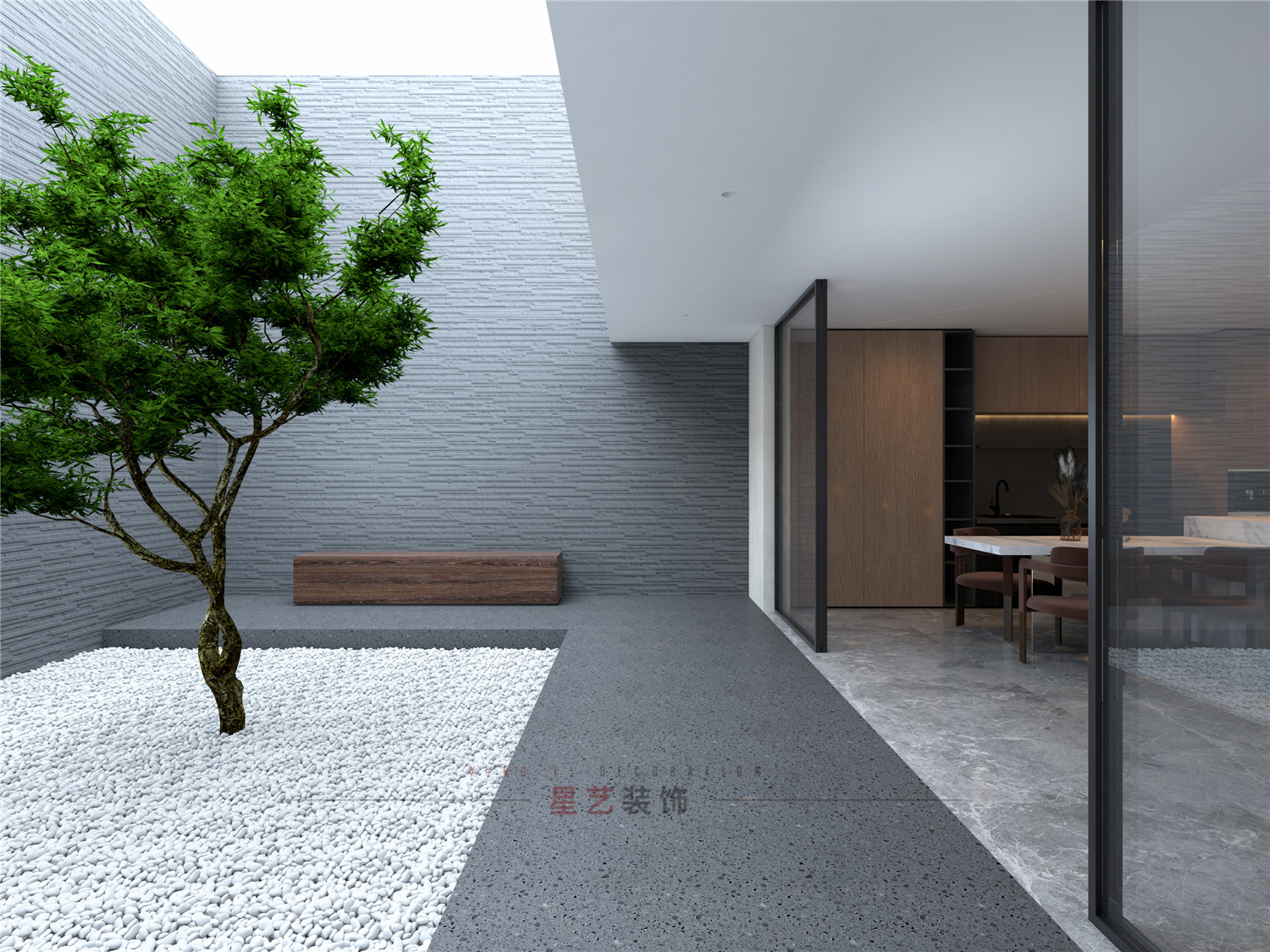 陽(yáng)光從落地窗投射進(jìn)來(lái),光影錯(cuò)落,線條干練;