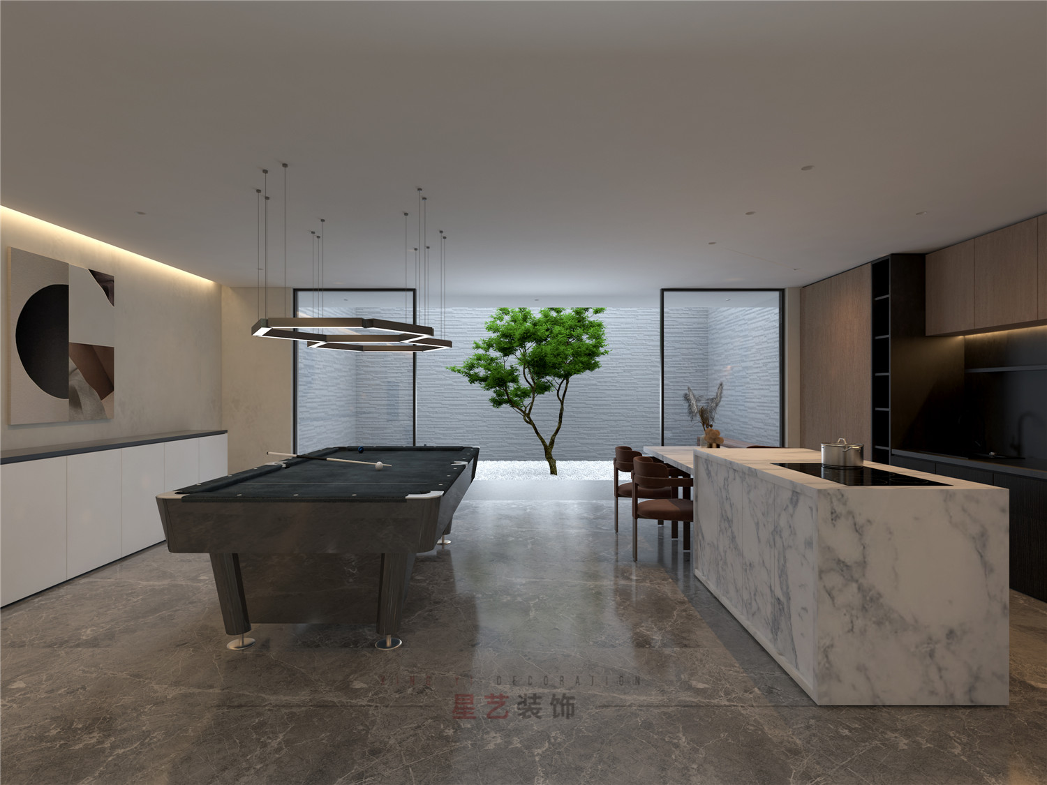 休閑區(qū)設(shè)置了臺(tái)球桌與吧臺(tái),與三五好友推杯換盞;