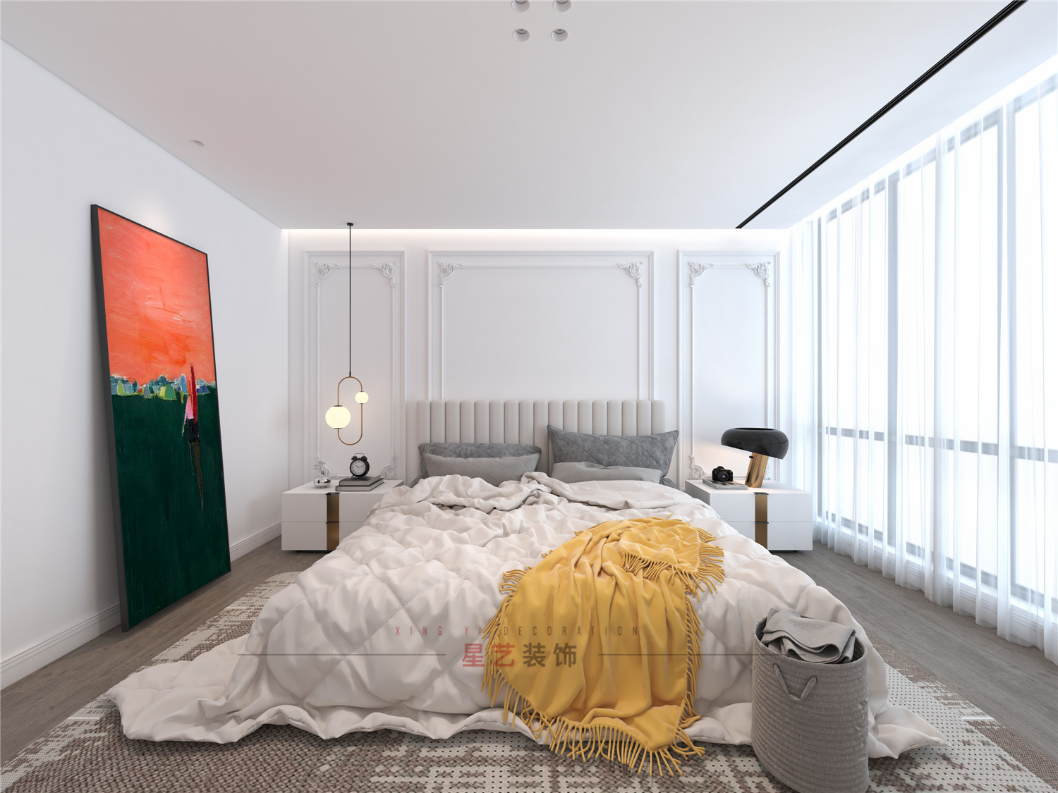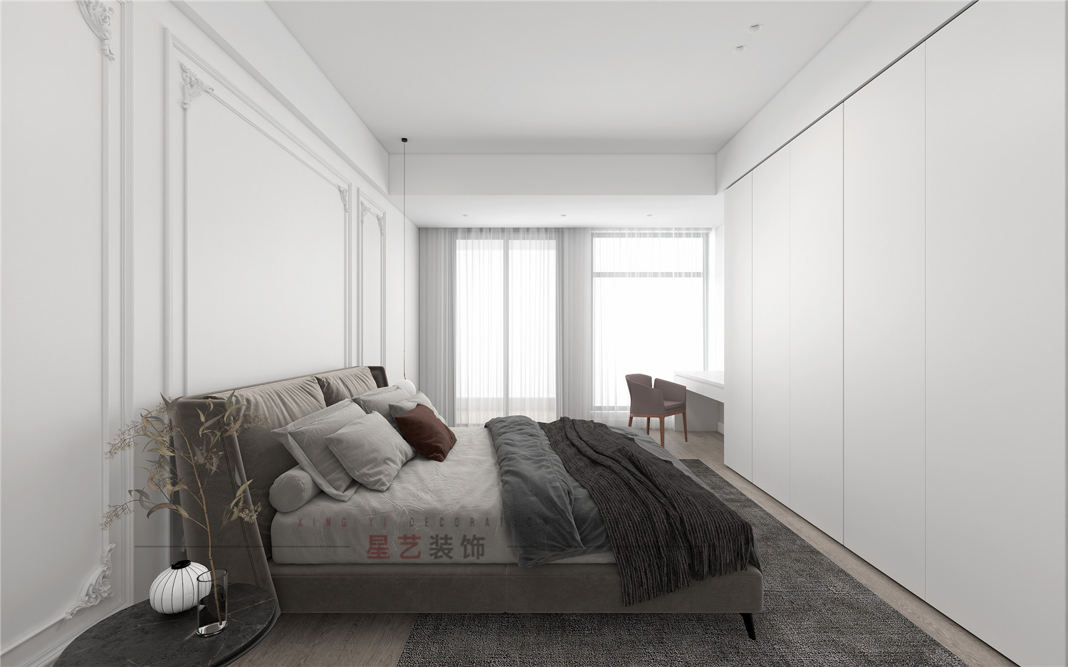 臥室部分以白色為主,在視覺上拓寬空間,通透明亮;