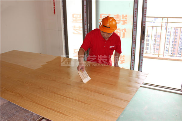 用底漆涂刷一遍,淺色飾面板正反面都要涂刷底漆。